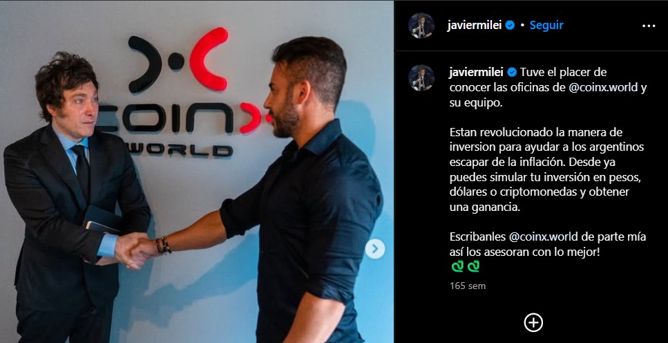 Tan solo unas semanas después, CoinX se derrumbó y tuvo que cerrar sus operaciones, engañando a inversores en el proceso, que lo perdieron todo. En esta entrevista de 2021, al cuestionar a Milei sobre esta publicación promocionada en Instagram, se desarrolla el siguiente intercambio: