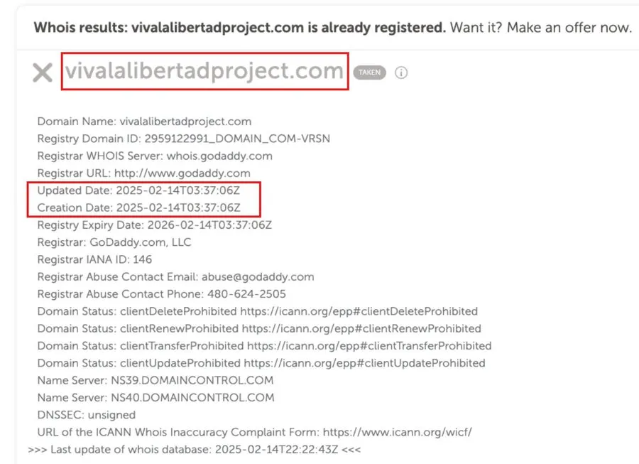 Como se mencionó anteriormente, el sitio web utilizado para lanzar la memecoin fue improvisado por decir lo menos, pero otro detalle interesante fue que el lanzamiento de la moneda LIBRA y el lanzamiento del sitio web ocurrieron momentos antes de las publicaciones de Milei en las redes sociales: