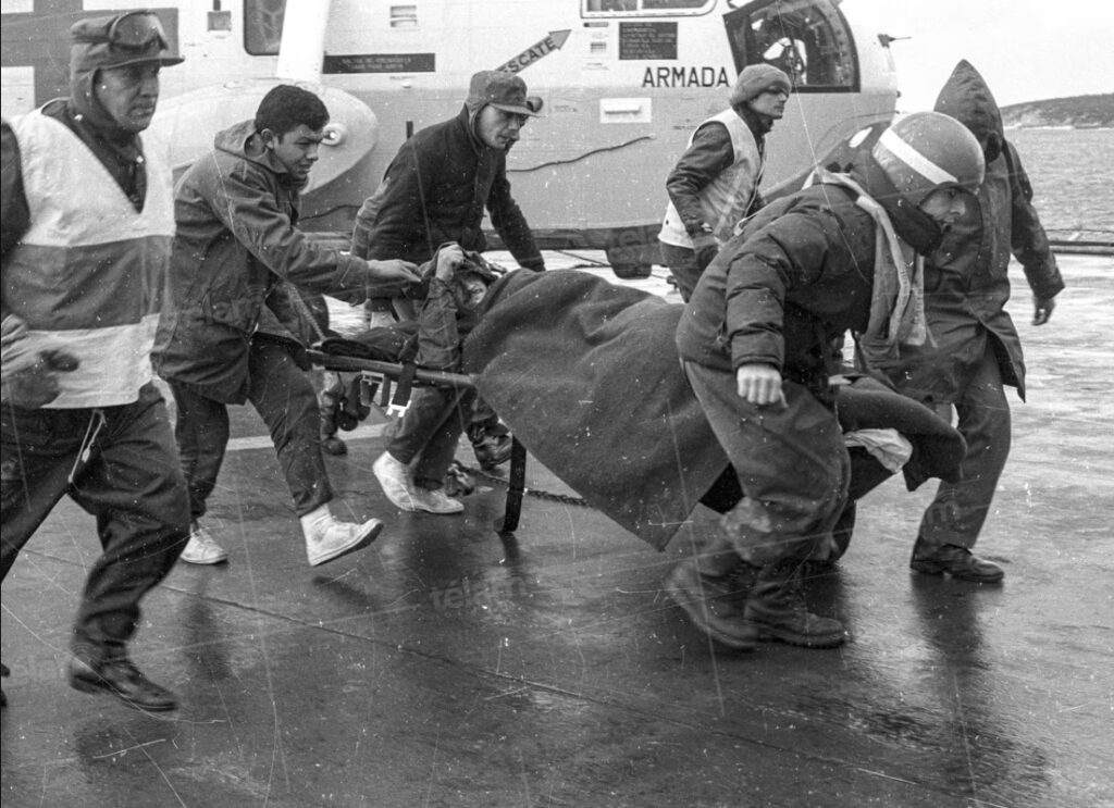 Los mismos riesgos que afrontaron aquellos que, en su afán de apoyar esta gesta, entregaron sus vidas, como el Contramaestre Rupp, primer marino mercante caído, entre otros 15 de la Marina Mercante y de la Prefectura Naval, pertenecientes al Transporte Isla de los Estados y otros mercantes y pesqueros. Recordar a esos aviadores de nuestras queridas Fuerza Aérea y Aviación Naval, que pusieron en juego sus vidas en misiones extremas, sin la más mínima certeza de regreso, infligiendo al enemigo enormes daños, hombres tales, como los capitanes Vázquez y Castillo, o los tenientes Márquez y Zubizarreta, que dieron todo, hombres que hoy y por siempre serán reconocidos por el mundo por su destreza y arrojo.