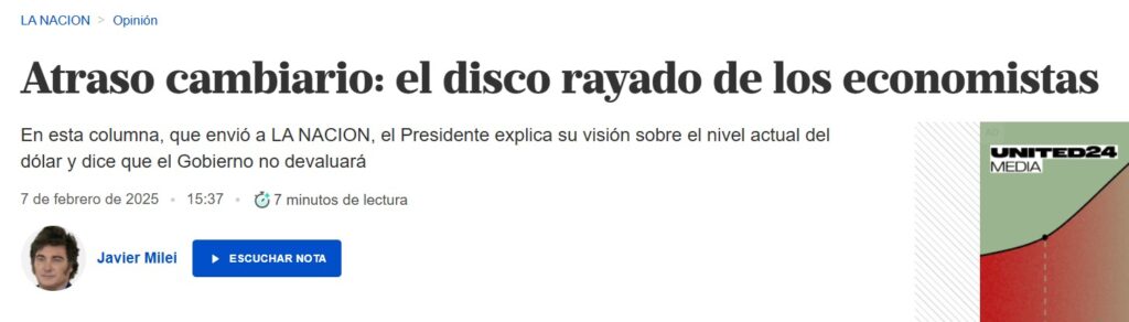 - Por el absurdo: si el tipo de cambio no estuviera apreciado, Milei podría sacar el cepo, dejar de intervenir en el mercado cambiario y dejar flotar la moneda. Por algo no lo hace.