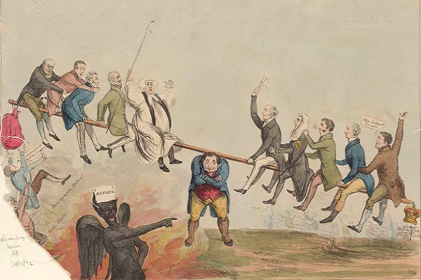 Para provecho de su monarquía y del catolicismo, Jacobo “había reformado las corporaciones municipales, invadido la libertad de las universidades y de la iglesia e intentado anular la Cámara de los Comunes”.[5] La Revolución no se animó, no supo, o no quiso, dar marcha atrás respecto de ciertos elementos que dejó el absolutismo proyectados en municipalidades, universidades, iglesias y Parlamento, y allí triunfaron los elementos conservadores. Lo cual, para fortuna de toda la empresa revolucionaria, no evaporó los otros elementos liberales que le sirvieron de sostén.