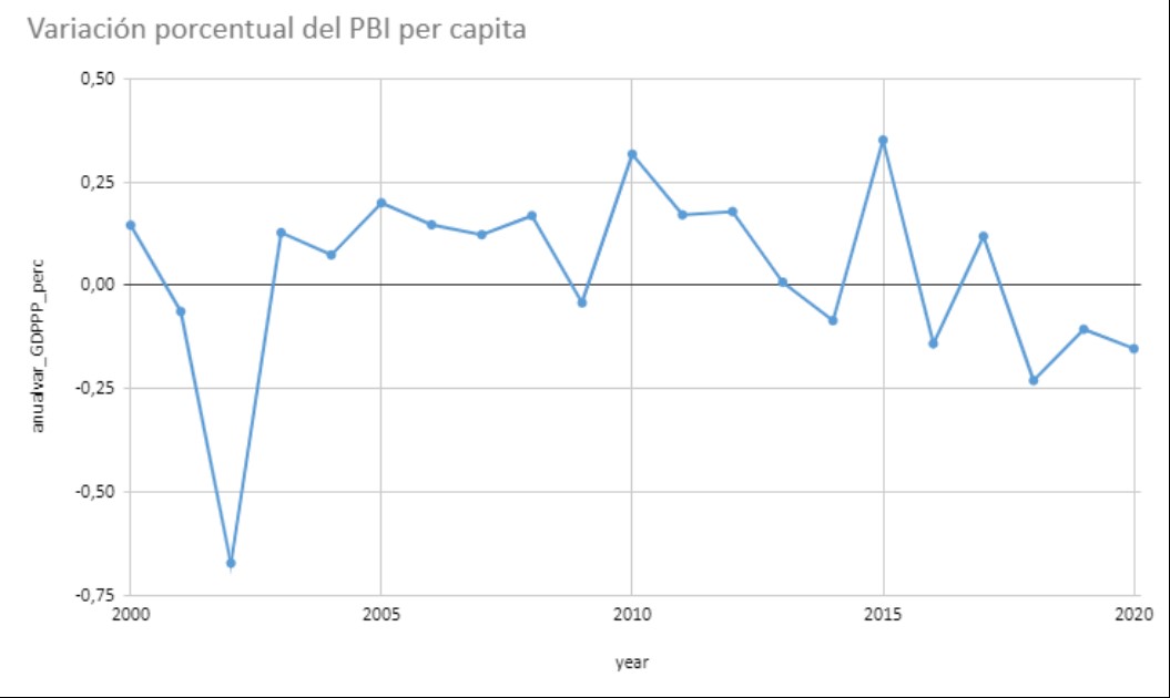 Desgraciadamente se puede establecer un paralelismo con la Argentina de manera muy sencilla. Desde las burocracias sin rostro, hasta las grandes inversiones en bienestar social y las dependencias que se generan para sostener dichos programas, pero, además de esto, encontramos una adición de vital importancia: la frágil economía nacional. Para ser más precisos, si bien al igual que en Estados Unidos podemos observar un aumento en el dinero destinado al área pública, en el que las políticas sociales están por supuesto incluidas (véase Gráfico 2), debemos recordar la constante inestabilidad y vulnerabilidad de la realidad económica argentina (véase Gráfico 3) y lo que esto implica.