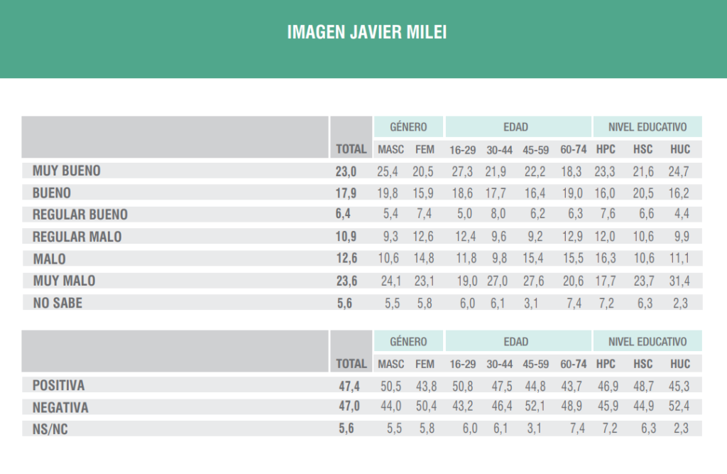 La “Luna de Hiel” parece estar haciendo su trabajo de desgaste sobre la imagen presidencial, cuando aún no se cumplieron los míticos primeros cien dias con Javier Milei al frente del Ejecutivo nacional. Si se mide -desde la crisis de 2001 al presente- el humor social de los primeros cien días, el antecedente que más se le asemeja es el del inicio de su segundo mandato de Cristina Kirchner, que ganó en octubre de 2011 en primera vuelta con el 54.4% de los votos, y cuya imagen ya aparecía muy dañada para finales de febrero del 2012, en buena parte por 2 factores: las paulatinas microdevaluaciones del peso que a finales del 2011 estaba en 4 pesos por dólar, y el duro golpe social que provocó la tragedia ferroviaria de Once con más de 50 muertos y casi 200 heridos.