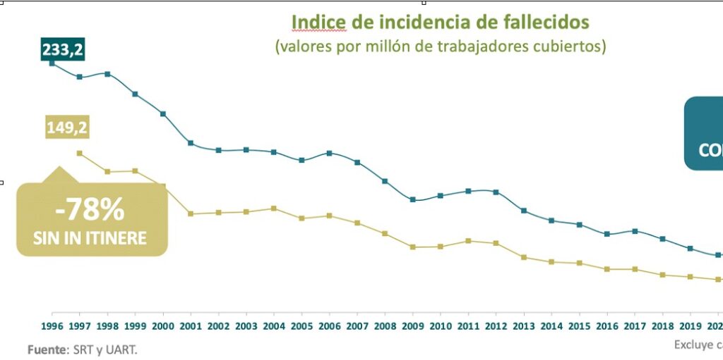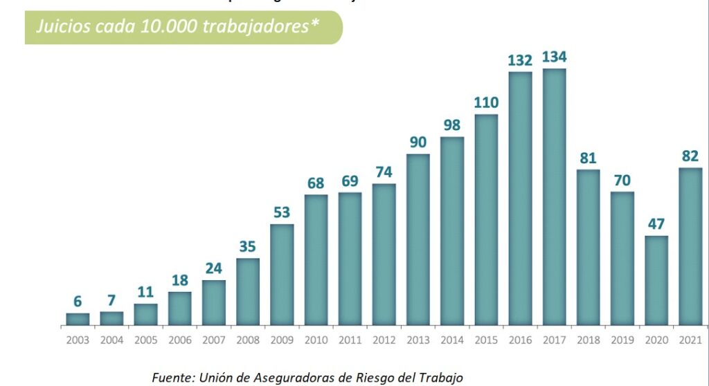 Paréntesis: el fenómeno de la litigiosidad crece descontroladamente cuando en las últimas décadas fue continua la baja de los índices de siniestralidad general y de muertes ocurridas en lugares de trabajo o en los trayectos desde y hacia las empresas o espacios donde se desarrollan las tarea. Ello, a pesar de la creación de tipos de trabajo con mayor exposición al riesgo (las aplicaciones, las motitos, el home office).
